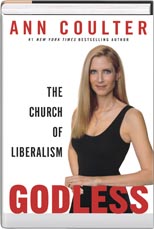 Few books are worth reading every word, but Ann Coulter's fifth best-seller is definitely one of the few. With a remarkable breath of knowledge and most delightful wit, she exposes the deceit and hypocrisy of liberalism. She shows that even though liberals despise religion, Because Ann Coulter bolsters her arguments with so much wit per paragraph, the reader feels compelled to savor every word. On radical environmentalism, she points out how they try to abolish one of mankind's best inventions, the flush toilet, allegedly to save water. Coulter shows that the liberals always describe the death penalty as 'racist,' regardless of the facts. She shows how the liberals treat Roe v. Wade as holy writ, and Alger Hiss and other Communists as martyrs. Coulter asserts that the public schools serve as churches for the liberals, where they inculcate students with liberal doctrines. If you ever thought evolution was tiresome, complicated, or an obsolete controversy worthy of notice only in Hollywood's propaganda movies, Ann Coulter's Godless will give you a new perspective. She demonstrates that evolution is a cult religion, and its priests and practitioners regularly treat any critics as religious heretics. The Darwinists' answer to every challenge is to accuse their opponents of, horrors, a fundamentalist belief in God, and probably for good measure, also in a flat Earth. Ann Coulter shows that Darwinists have not produced a single observable example of one species evolving into another by the Darwinian mechanism of variation and selection. All they have is a story that demands fanatical faith in their Church of Liberalism. Coulter tells about the many "peer-reviewed" frauds, the faked drawings, fossils and moths, that have deceived generations for many decades. When Darwinists can't deny the frauds, or are confronted by things they can't explain, they simply reiterate that these must have been caused by random chance, not intelligence, or else it's not science. Ann Coulter doesn't merely show that the liberals and the Darwinists are wrong in logic and facts; in her inimitable style, she shows the absurdity of their doctrines, and that their claimed infallibility is simply the measure of the fact that they can't formulate a coherent counter argument. She shows that the liberals' devotion to Darwinism has nothing to do with respect for science and everything to do with their determination to make us an atheist country. Those who like Coulter's unapologetically brash style will find her new book full of fresh meat to sink their teeth into. It's no wonder that Godless spent many weeks on the New York Times best-seller list. (Crown Forum, New York, 2006, 310 pp., $27.95) |