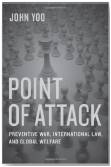 In Point of Attack, Yoo examines wars beginning with ancient conflicts. He delves into concepts that involve rethinking defensive, preemptive, or preventive measures with an eye to what most advances "global welfare." One major current source of concern is Iran becoming a nuclear power. Passing the Corker Amendment, the Republican Senate effectively changed the Constitution by requiring a two-thirds vote of both houses of Congress to disapprove of treaties negotiated by the U.S. President. Yoo criticizes this move which grants more power to the president.